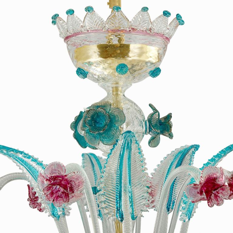• A work of art characterised by a triumph of exquisite glass details, such as the flower and leaf features, worked exclusively by hand by Murano masters.