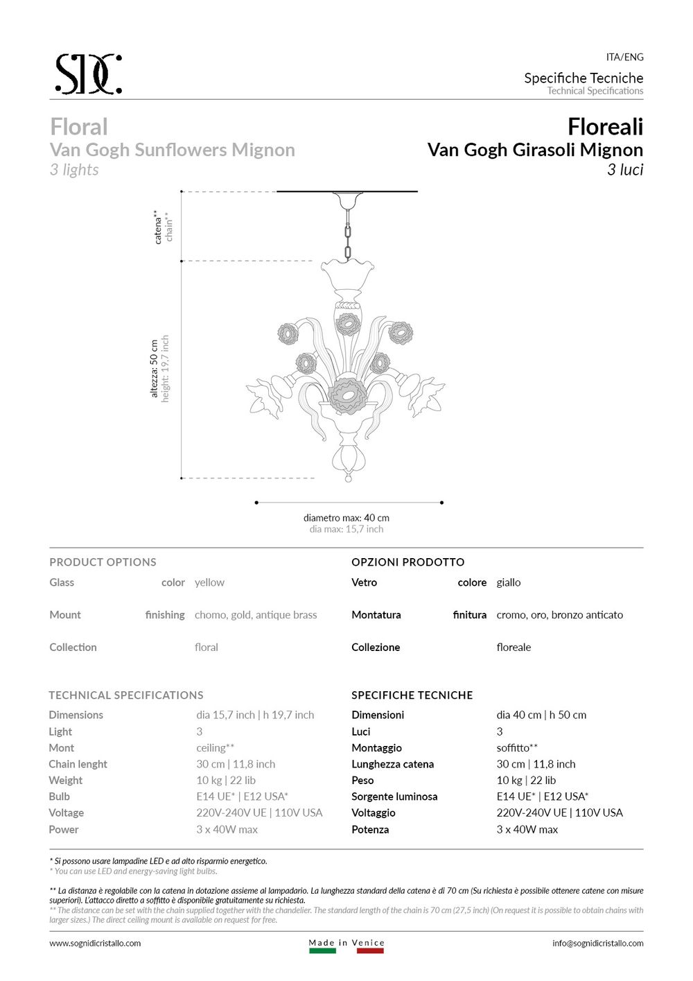 • Van Gogh Tournesols Mignon: authentique lampadaire floral en verre soufflé vénitien Sogni di Cristallo®.