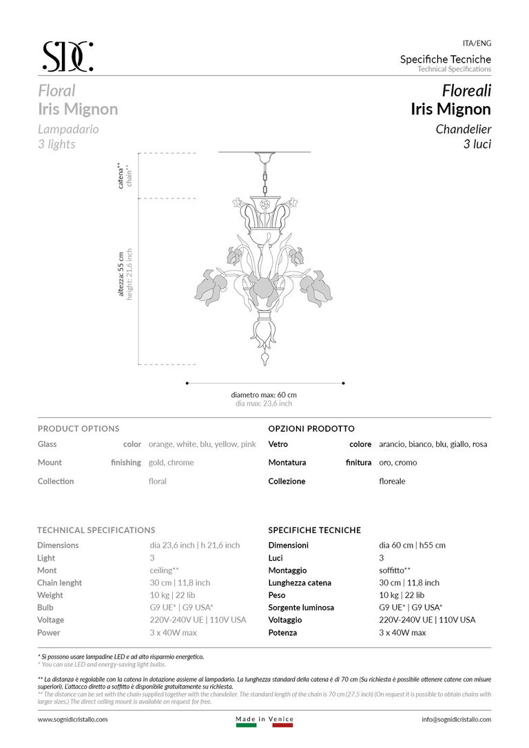Iris Mignon: auténtica lámpara de araña floral de vidrio soplado veneciano Sogni di Cristallo®.