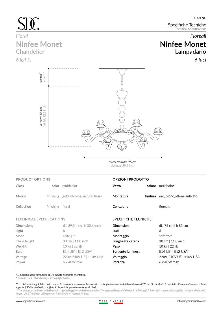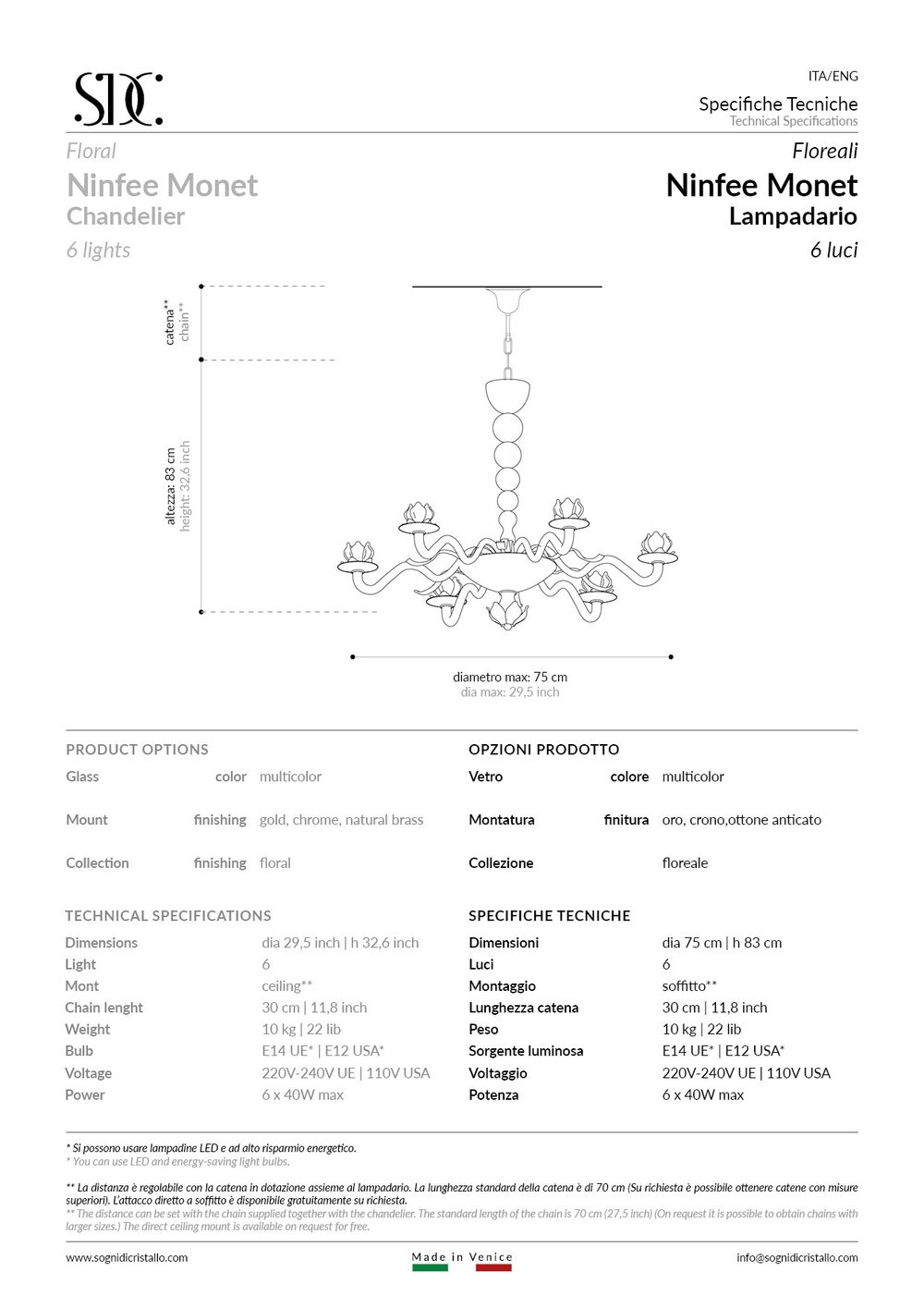 • Ninfee Monet: autentico lampadario floreale in vetro soffiato veneziano Sogni di Cristallo®.