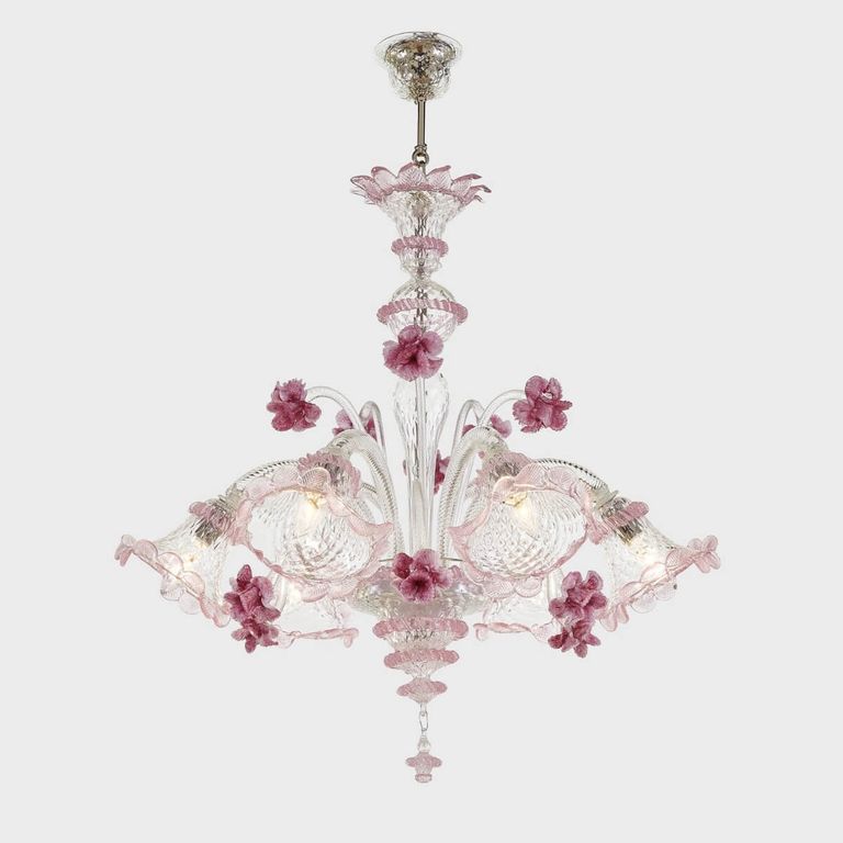 Kunstwerk mit Verzierungen aus Blättern und Blumen (in farbiger Glaspaste), die von venezianischen Glasmeistern in Handarbeit gefertigt wurden.