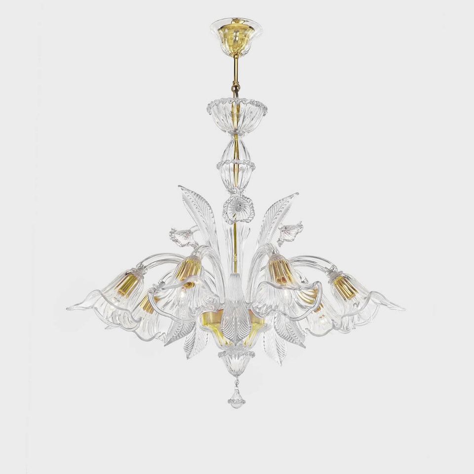 Work of art embellished with precious leaves and flowers produced by Venetian master glassmakers.