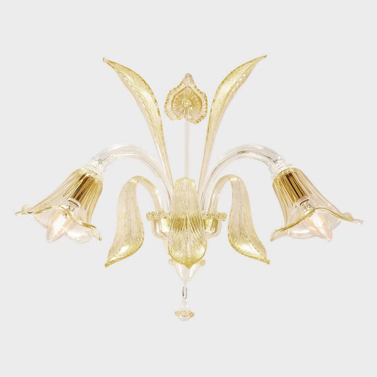 • Work of art embellished with precious leaves and flowers produced by Venetian master glassmakers.
