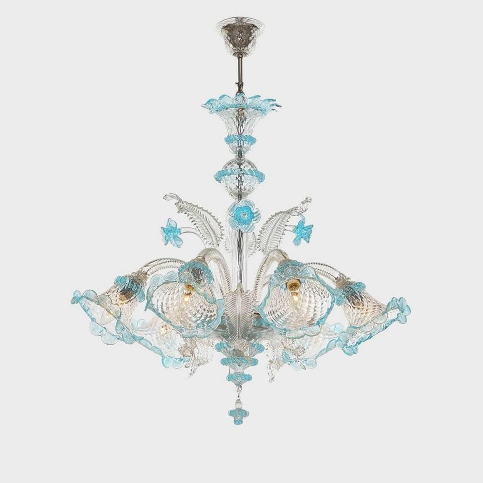 • Work of art embellished with precious leaves and flowers produced by Venetian master glassmakers.