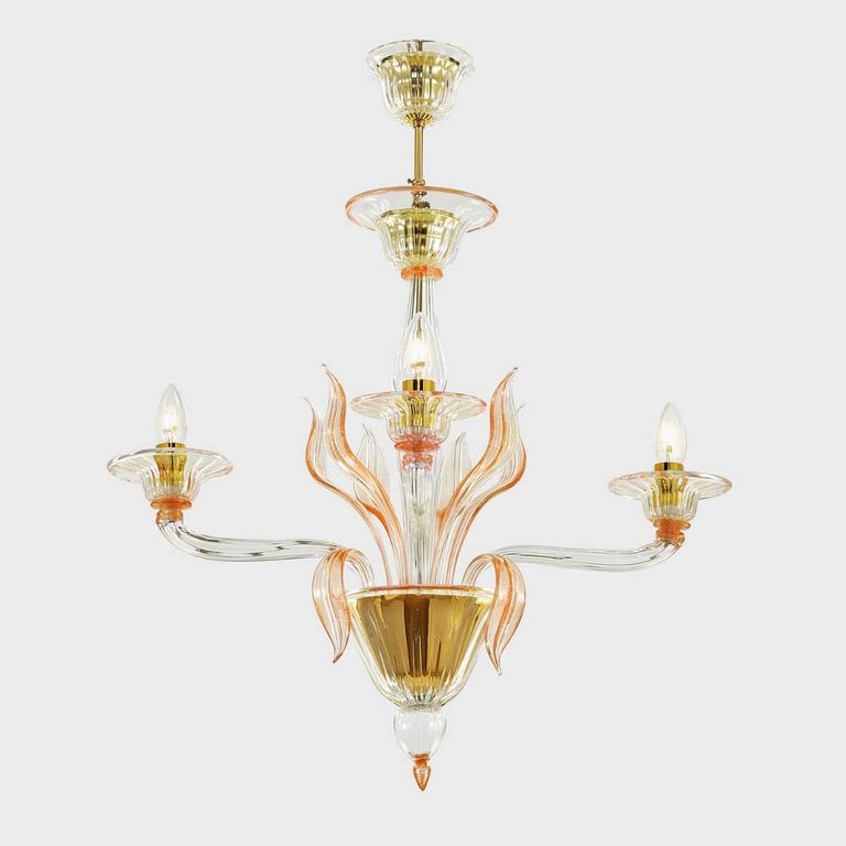 • Artistic work embellished with precious leaves worked by Venetian master glassmakers.