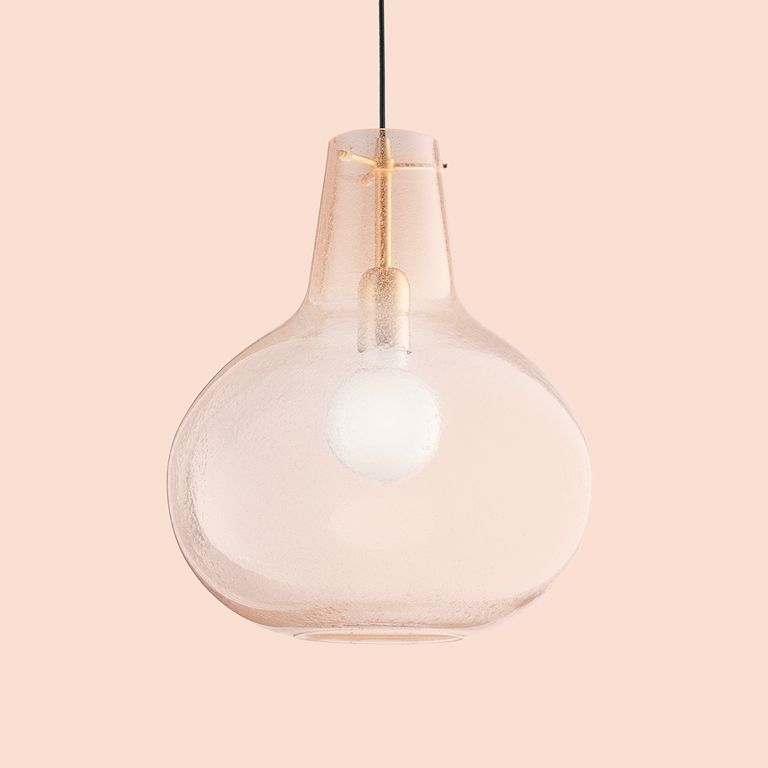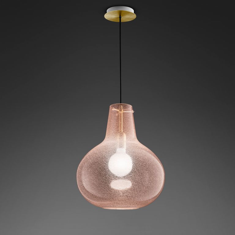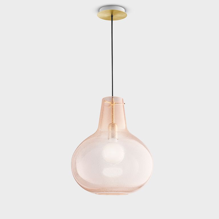 This glass diffuser with its distinctive irregular onion shape, made by traditional mouth-blowing, is available in the colours light amber and antique pink with a special "bollicine" finish which creates exciting plays of light.