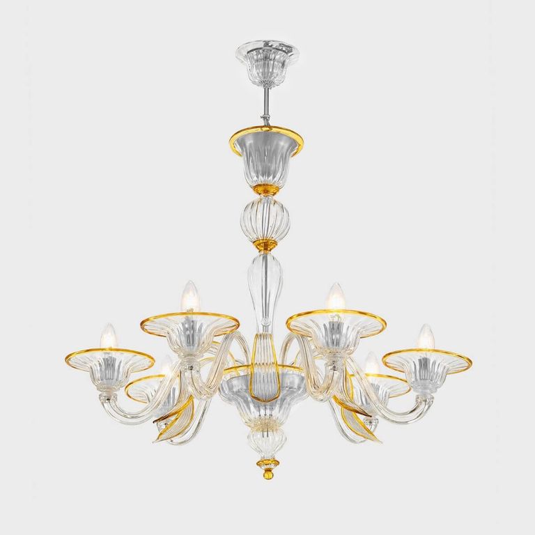 • Travail artistique agrémenté de feuilles précieuses travaillées par des maîtres verriers vénitiens.