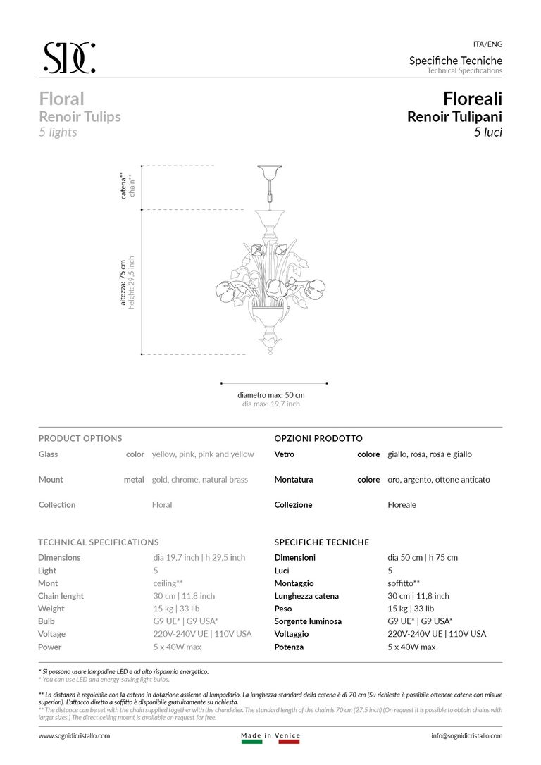 Renoir Tulips: authentic floral chandelier in Sogni di Cristallo® Venetian blown glass.