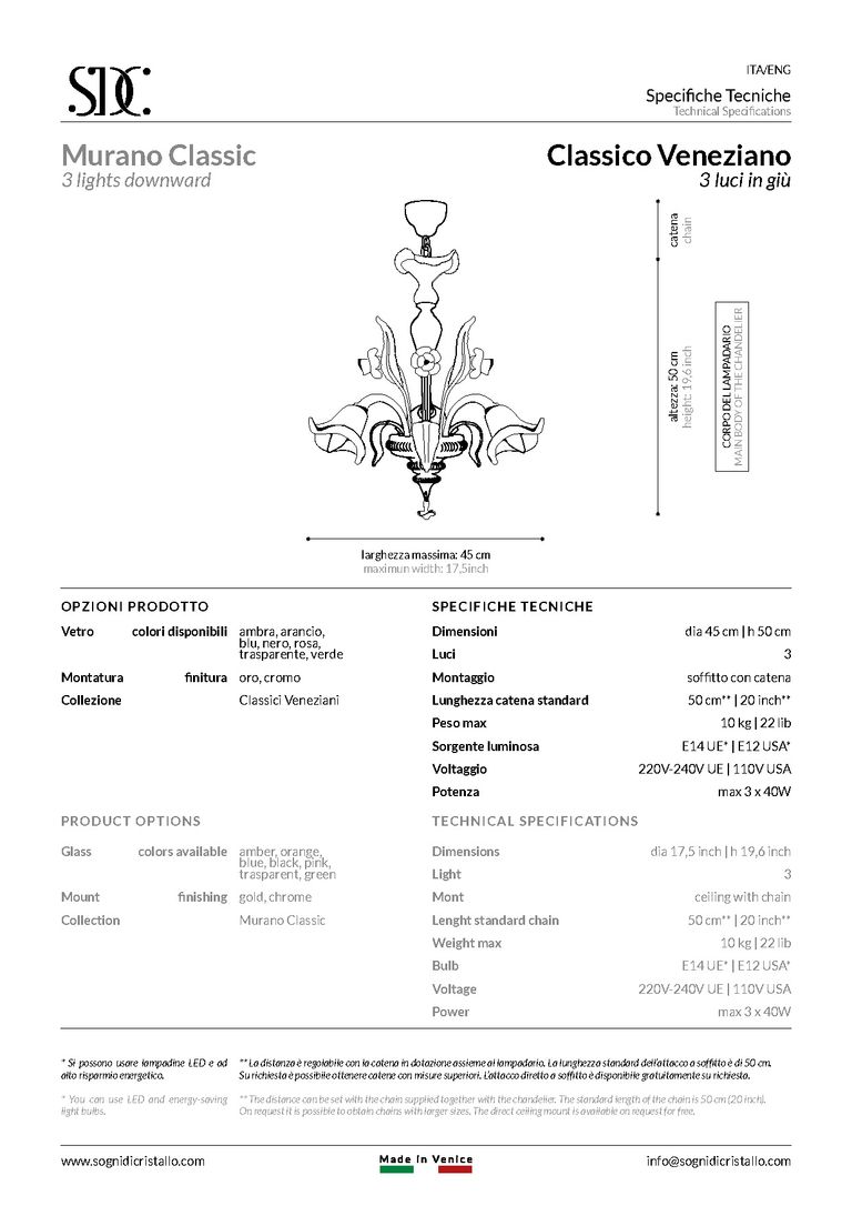 • Campi Elisi: autentico lampadario classico in vetro soffiato veneziano Sogni di Cristallo®.