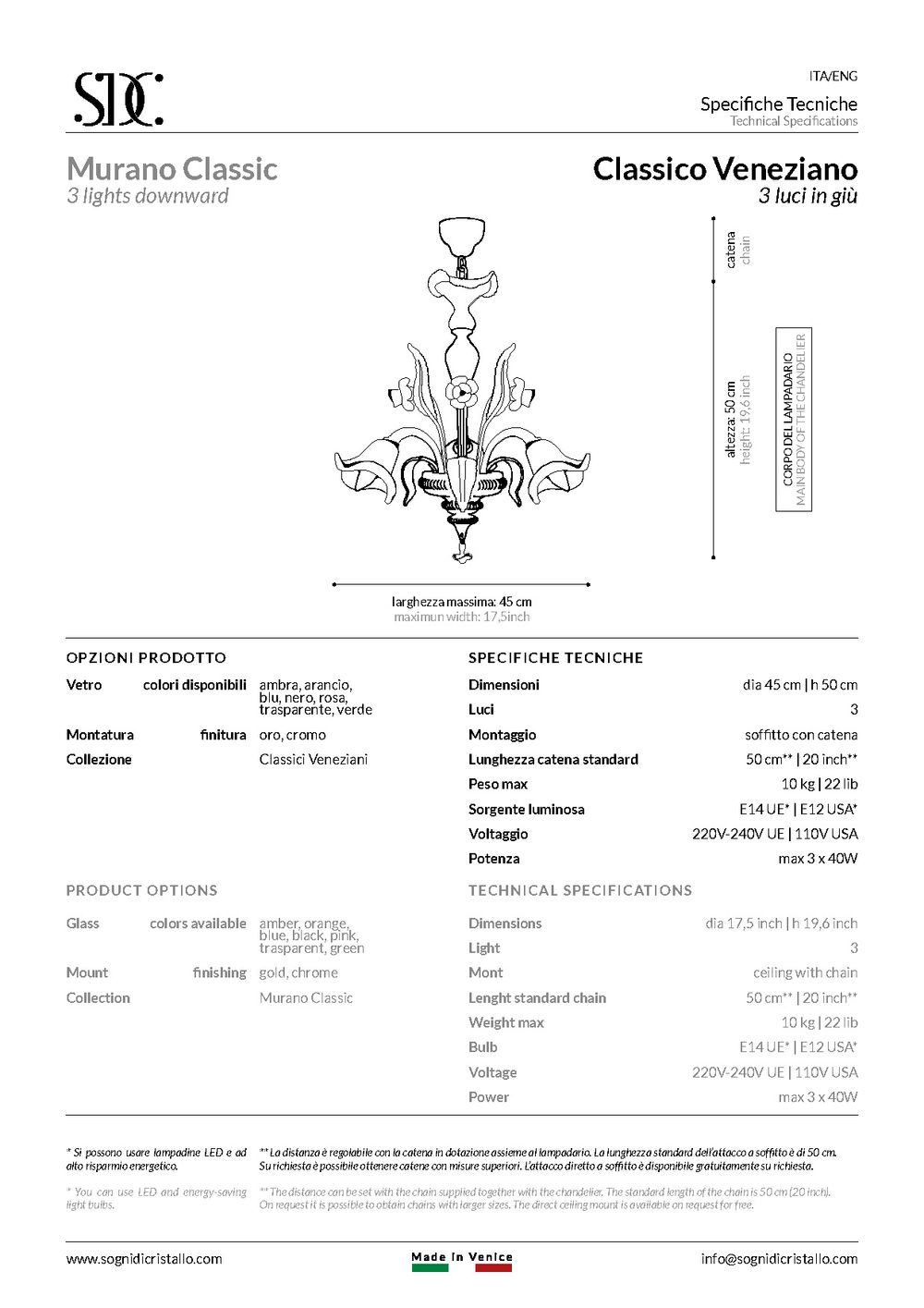 • Realizzato interamente a mano nelle fornaci dell’entroterra veneziano, in Italia, secondo la tradizionale tecnica del vetro di Murano.