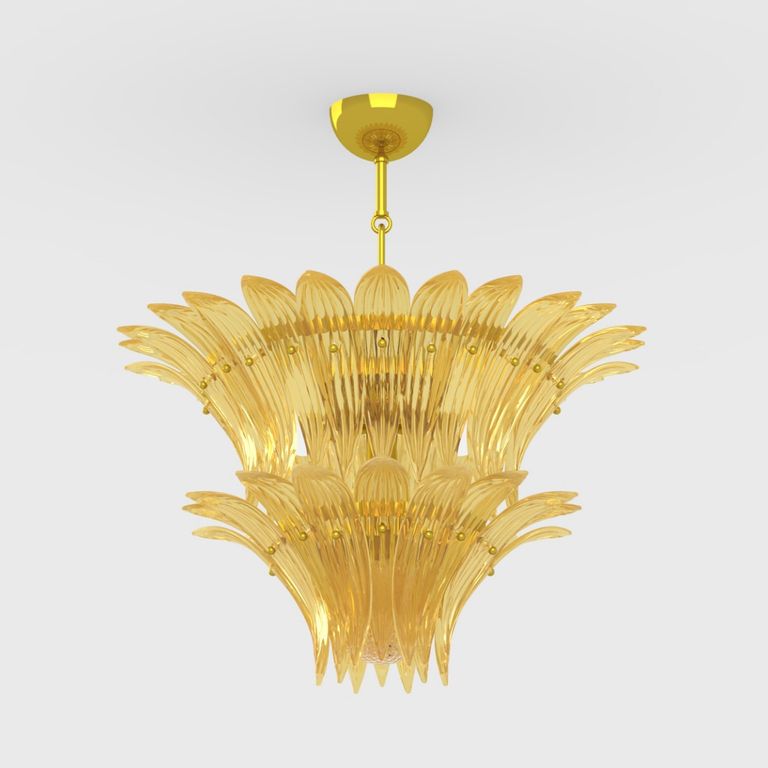 Il design originale gioca sulla ripetizione di elementi vitrei scintillanti detti 'palmette' in grado di creare un'illuminazione raffinata e affascinante.