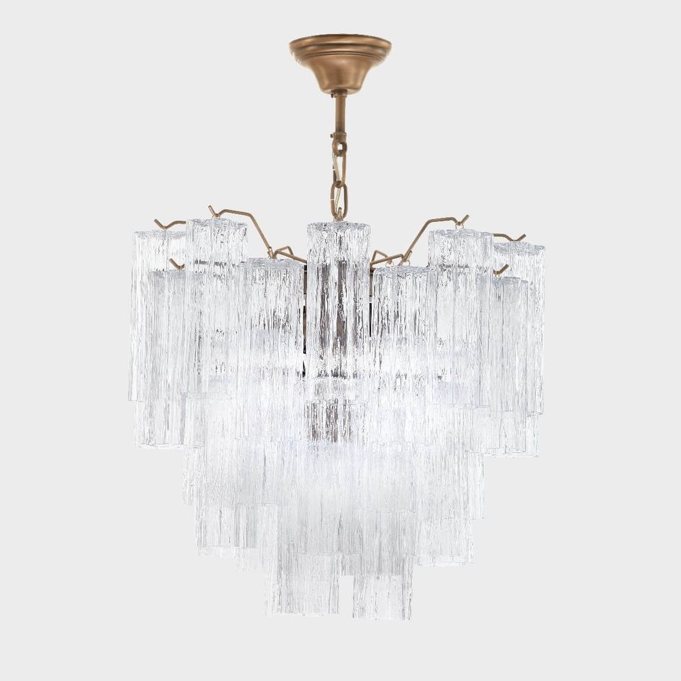 • Il design originale gioca sulla ripetizione di elementi vitrei scintillanti (detti 'tronchi') in grado di creare un'illuminazione raffinata e affascinante.