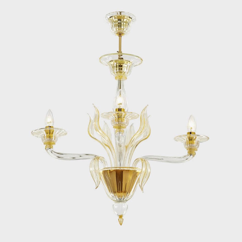 Damocle Oro: autentico lampadario classico in vetro soffiato veneziano Sogni di Cristallo®.