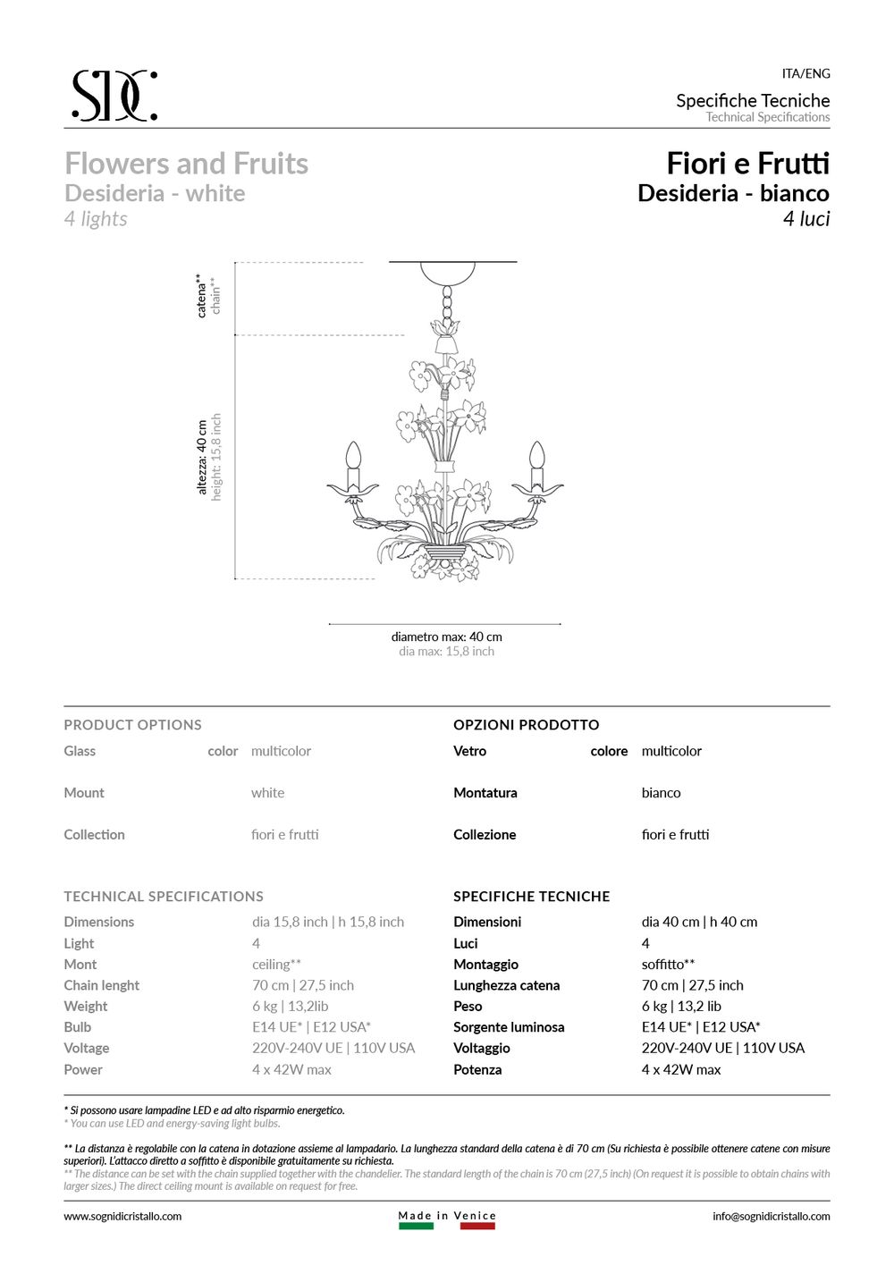 • Desideria Bianco: autentico lampadario a fantasia fiori e frutti in vetro soffiato veneziano Sogni di Cristallo®.