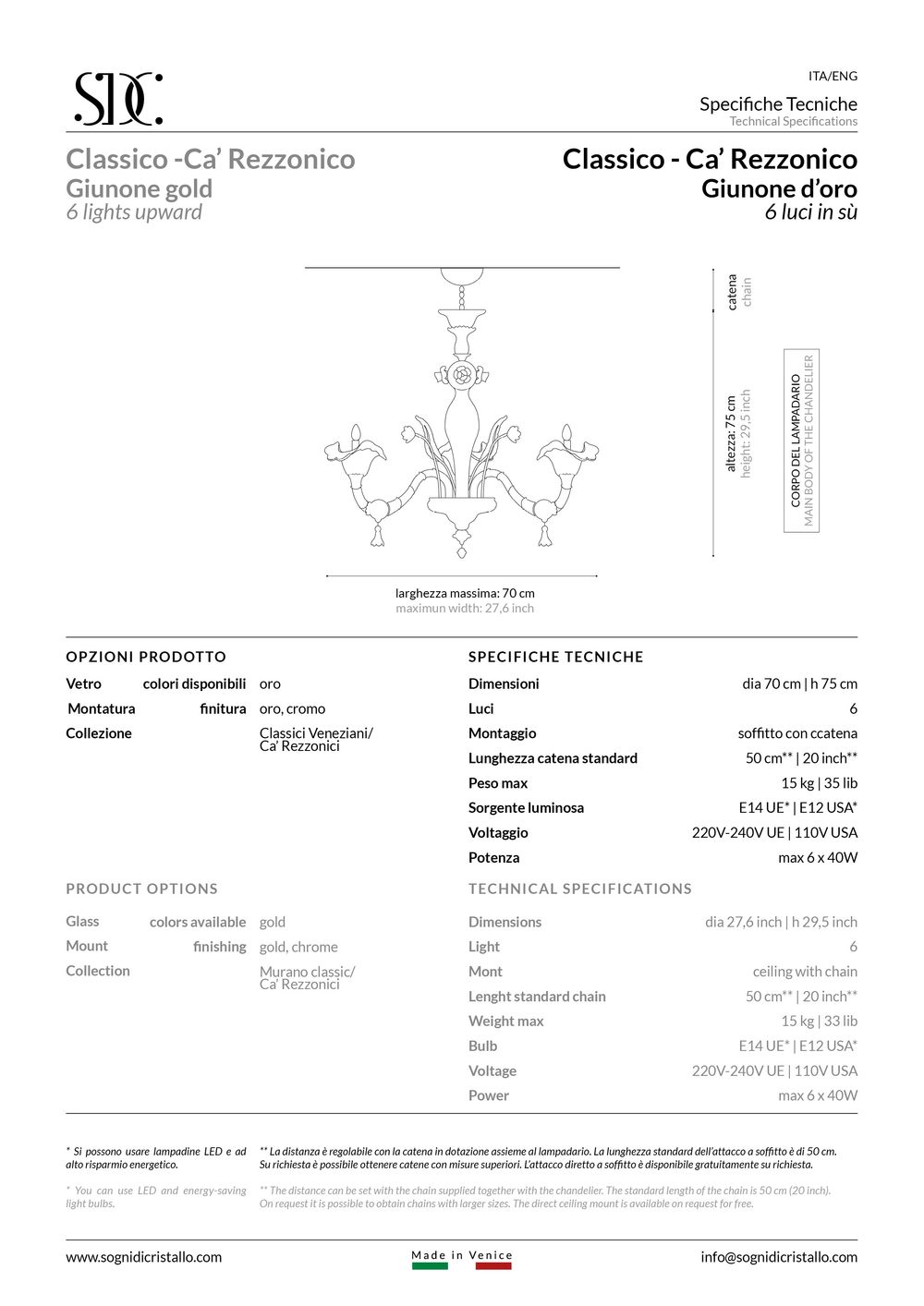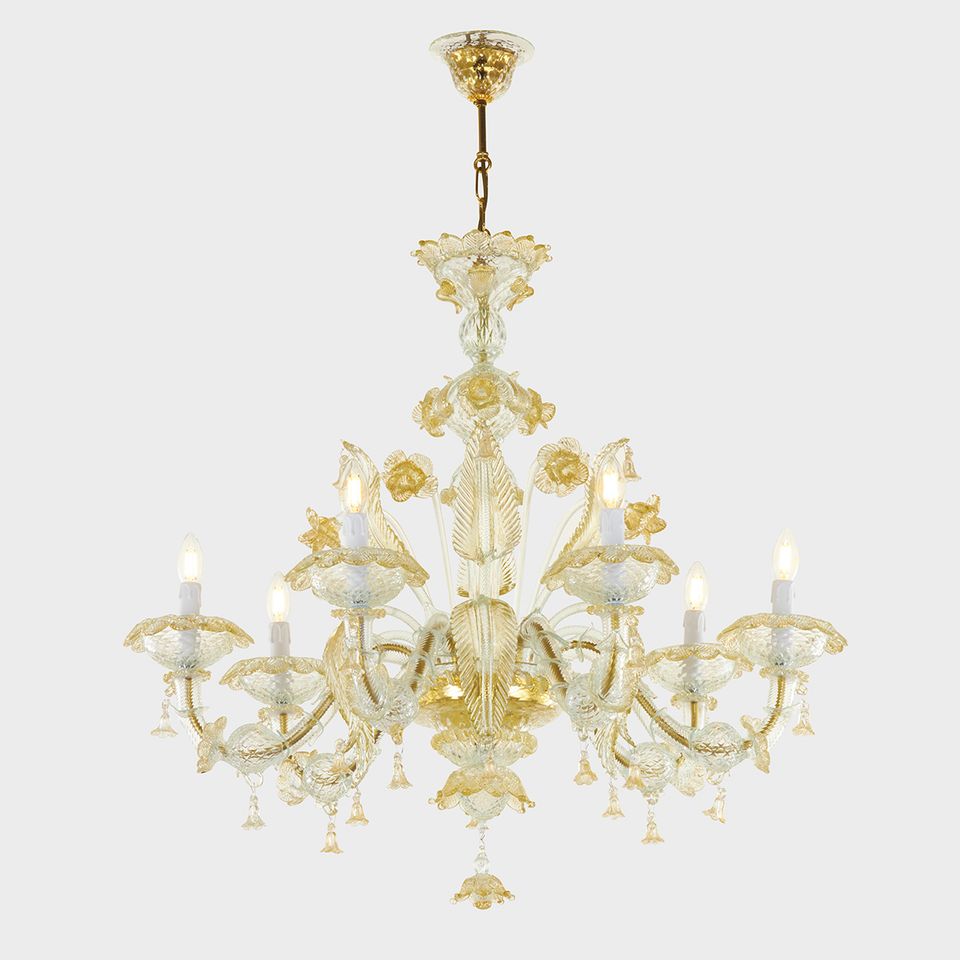 Giunone d'oro: autentico lampadario classico in vetro soffiato veneziano Sogni di Cristallo®.