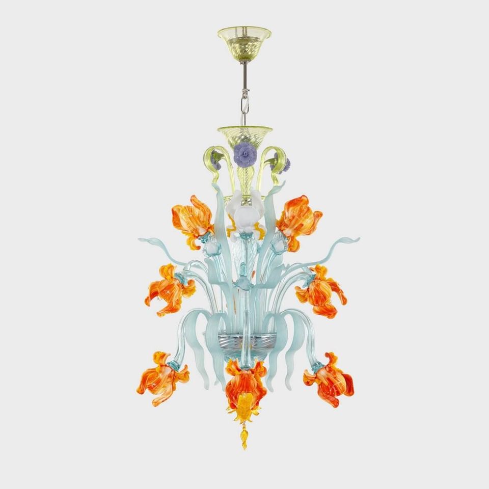 • Van Gogh Iris 9 Luci: autentico lampadario floreale in vetro soffiato veneziano Sogni di Cristallo®.