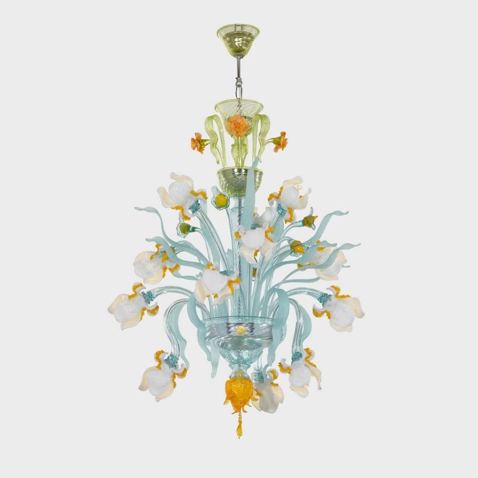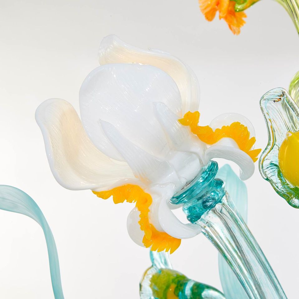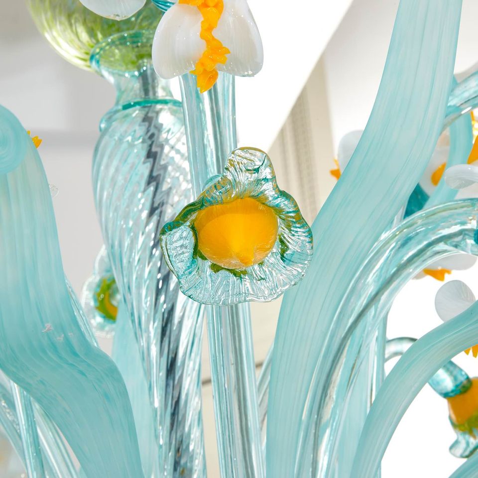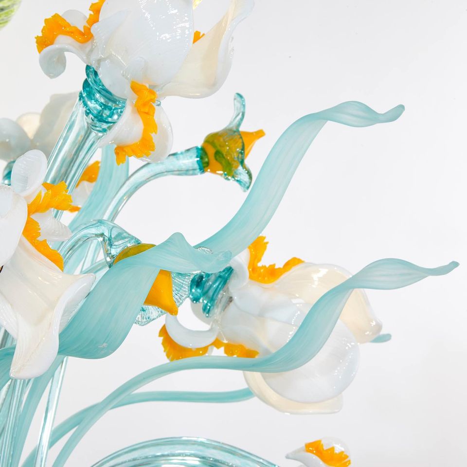 Van Gogh Iris: autentico lampadario floreale in vetro soffiato veneziano Sogni di Cristallo®.