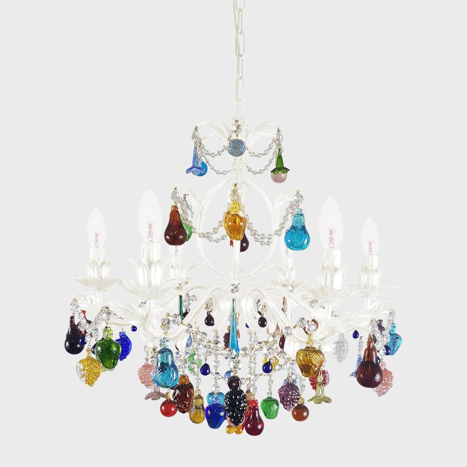 • Mandragola Deluxe Bianco: autentico lampadario a fantasia fiori e frutti in vetro soffiato veneziano Sogni di Cristallo®.