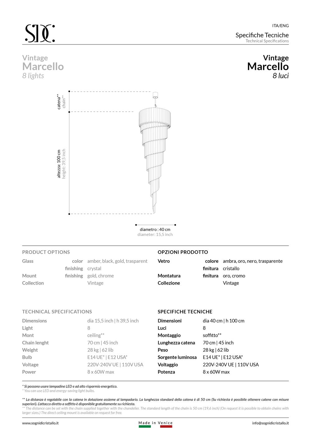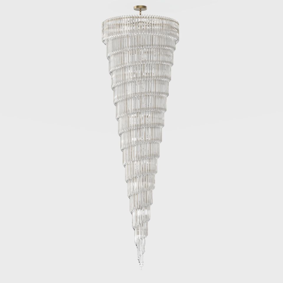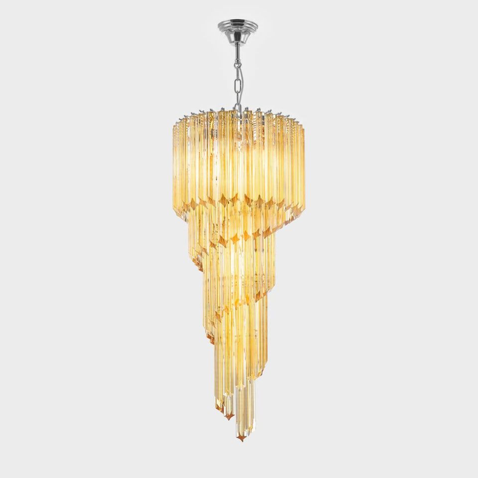 Il design originale gioca sulla ripetizione di elementi vitrei scintillanti (detti 'quadriedri') in grado di creare un'illuminazione raffinata e affascinante.