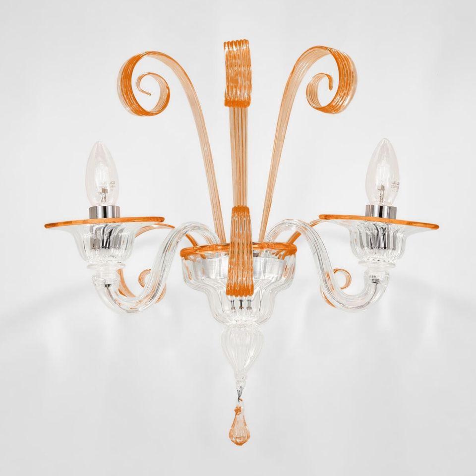 Mercurio: autentica lampada da parete pastorale classica in vetro soffiato veneziano Sogni di Cristallo®.