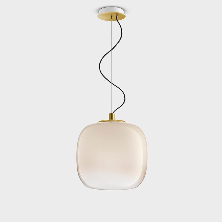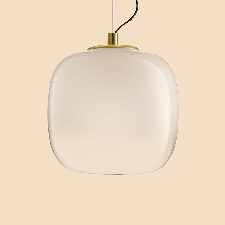 Lampada a sospensione in vetro soffiato a luce diffusa ispirata al design degli anni ‘80.