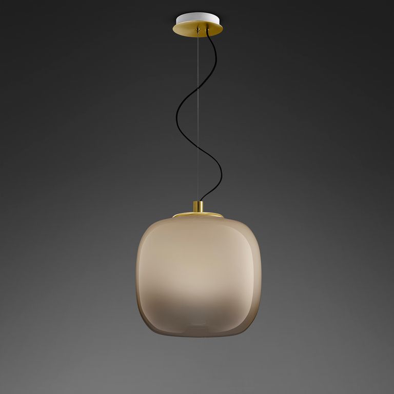 Il diffusore in vetro, dalla forma originale, è realizzato con la tradizionale soffiatura a bocca ed è disponibile nei colori rosa antico, cristallo trasparente e paglierino con la particolare finitura "incamiciato sfumato" che crea incredibili effetti cromatici.