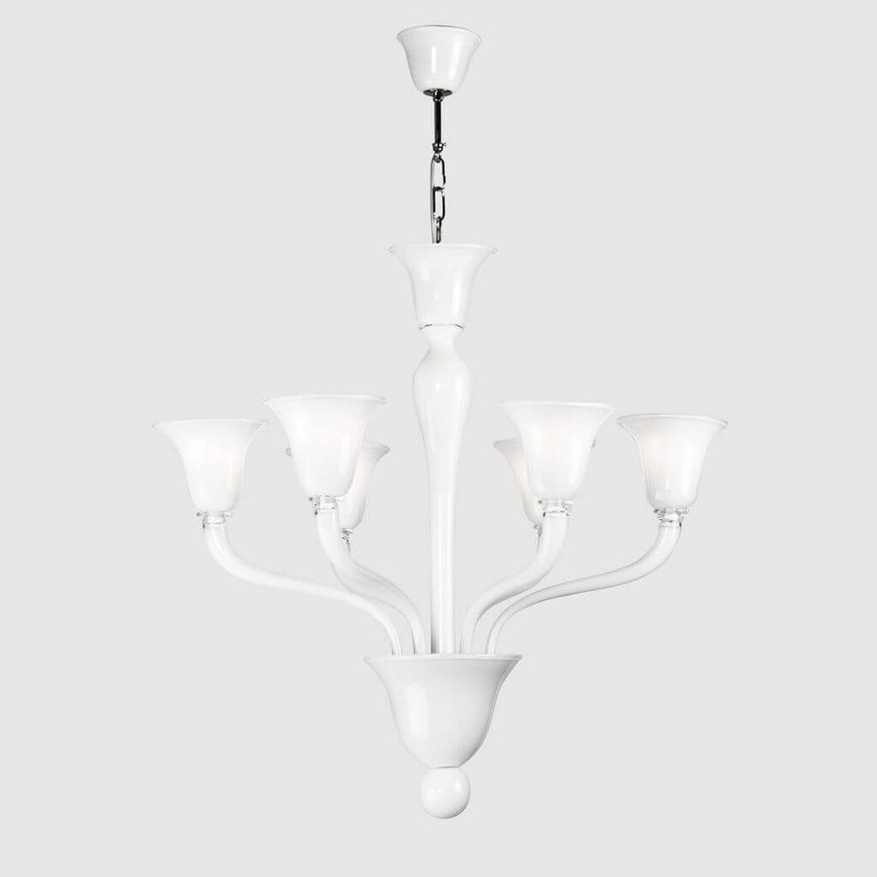 Dal disegno ricercato ed essenziale in finissimo vetro lavorato esclusivamente a mano dai maestri muranesi.