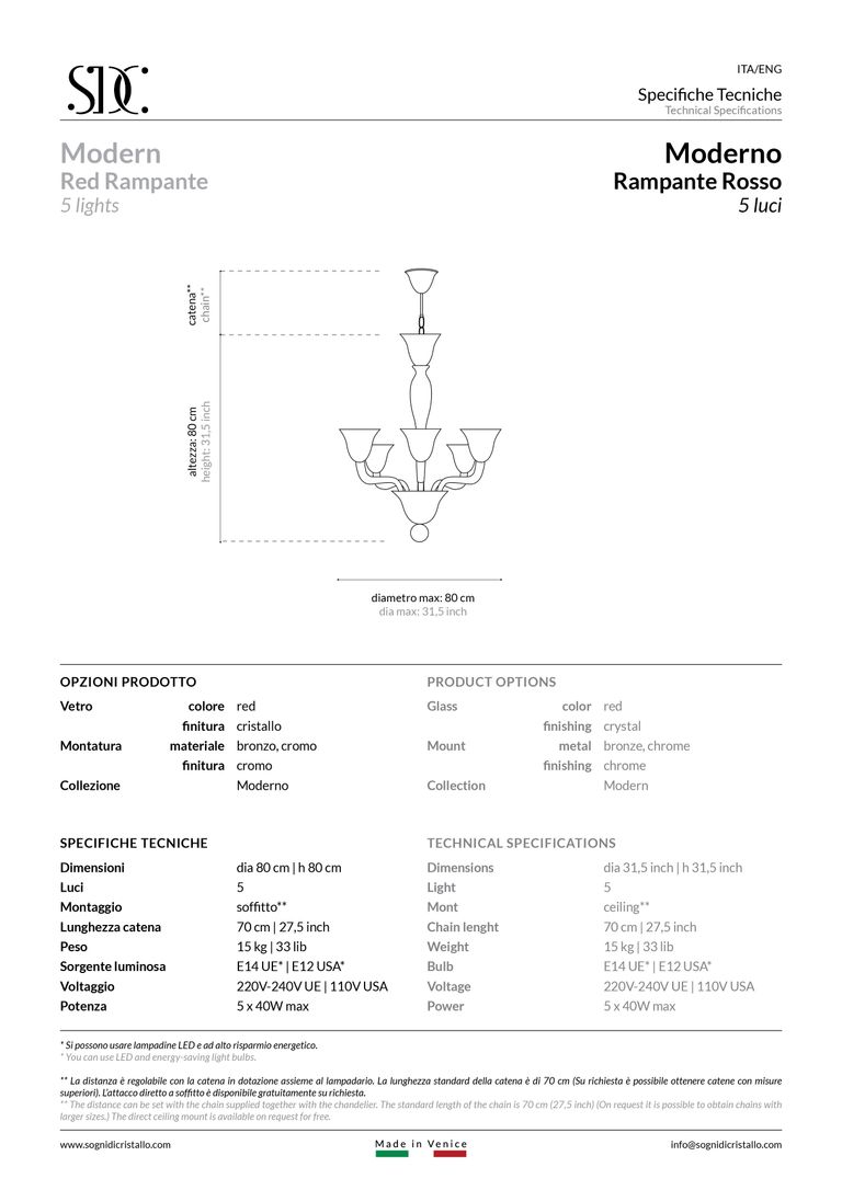 Rampante: autentico lampadario in vetro soffiato veneziano Sogni di Cristallo®.