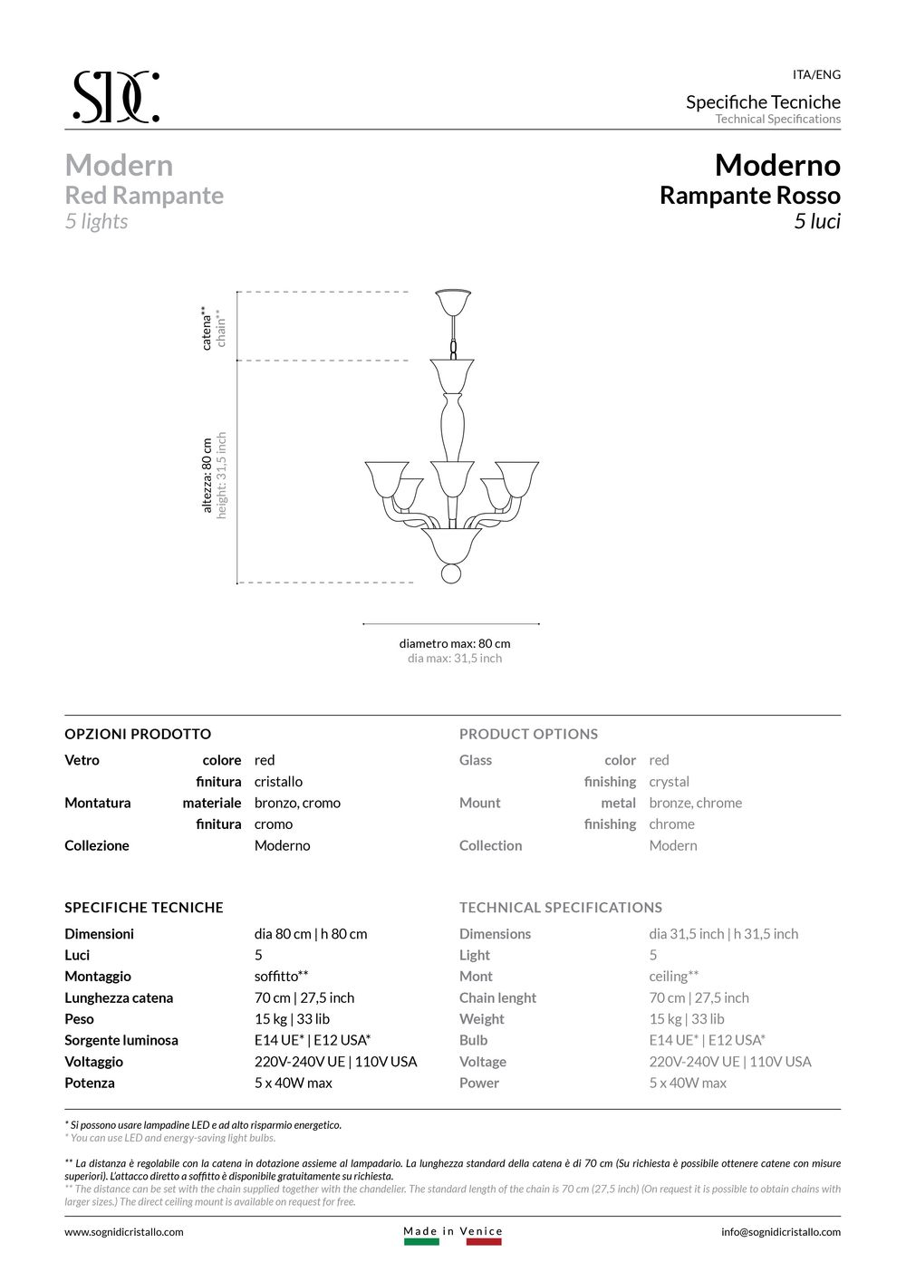 Realizzato interamente a mano nelle fornaci dell’entroterra veneziano, in Italia, secondo la tradizionale tecnica del vetro di Murano.