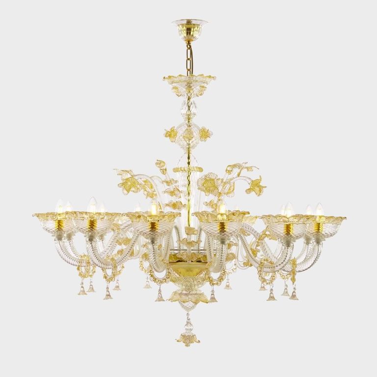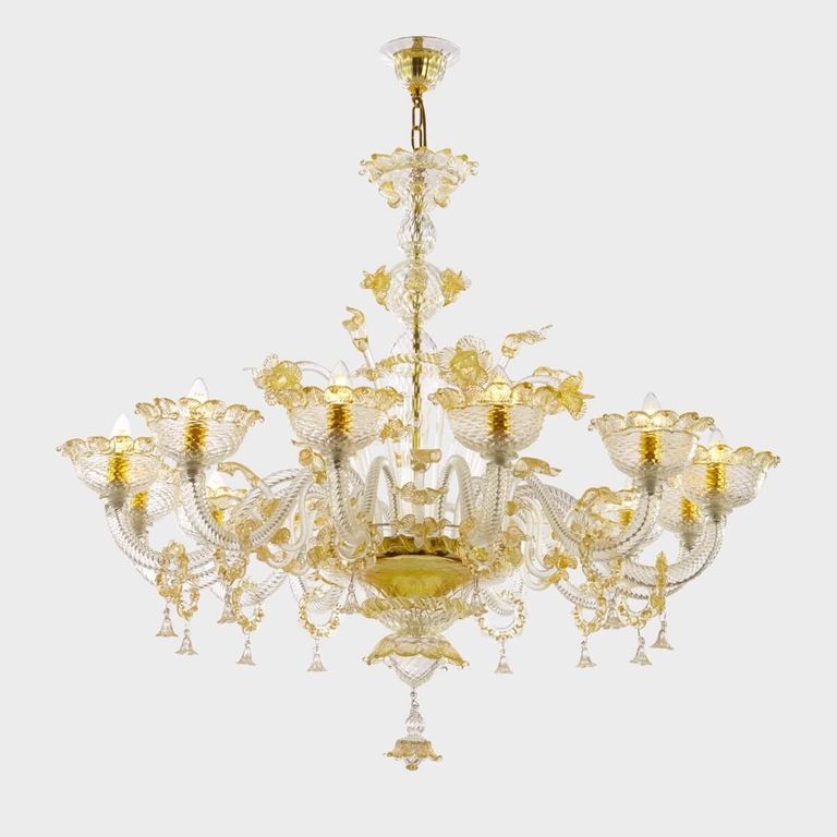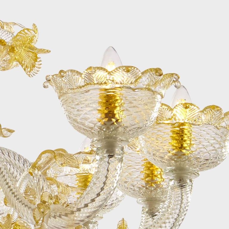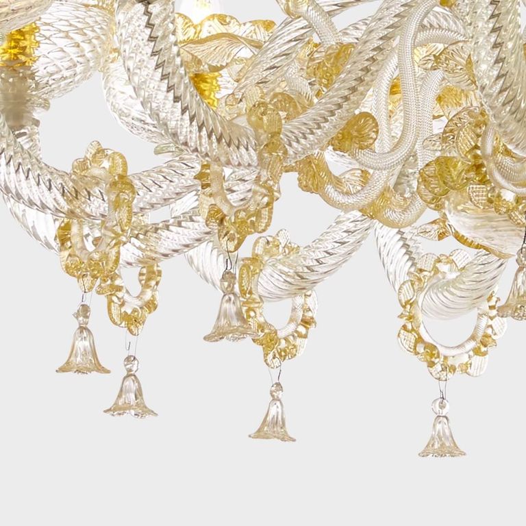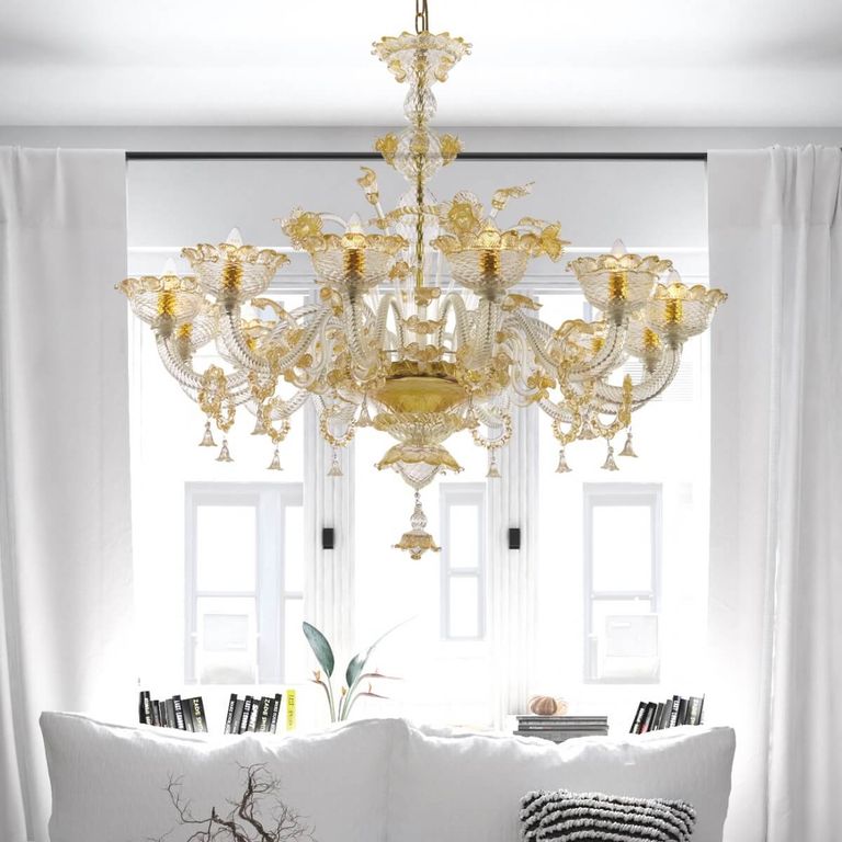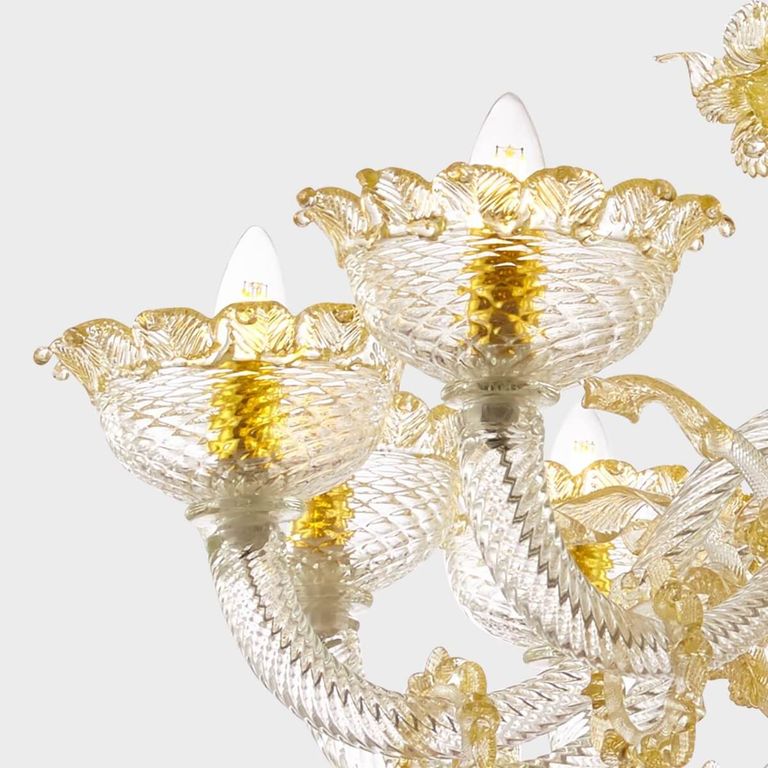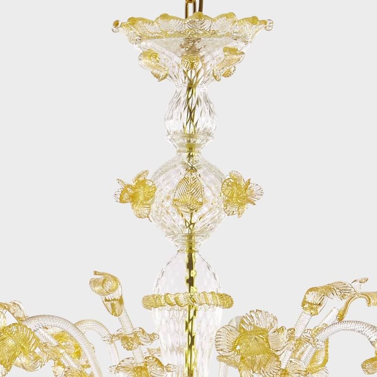 • Apollo de oro Deluxe: auténtica lámpara de araña clásica de vidrio soplado veneciano Sogni di Cristallo®.