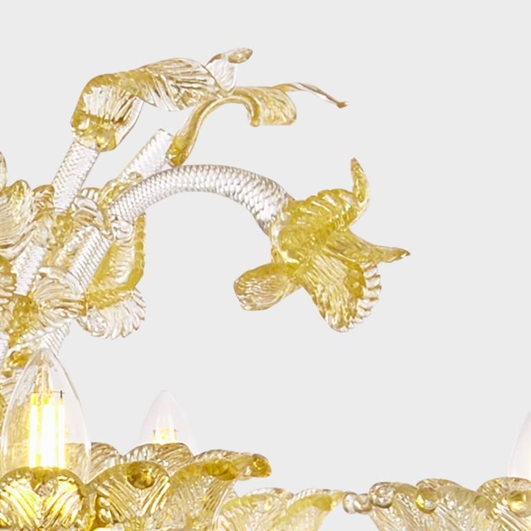• Obra artística embellecida por preciadas hojas y flores elaborados a mano por maestros vidrieros artesanos venecianos.