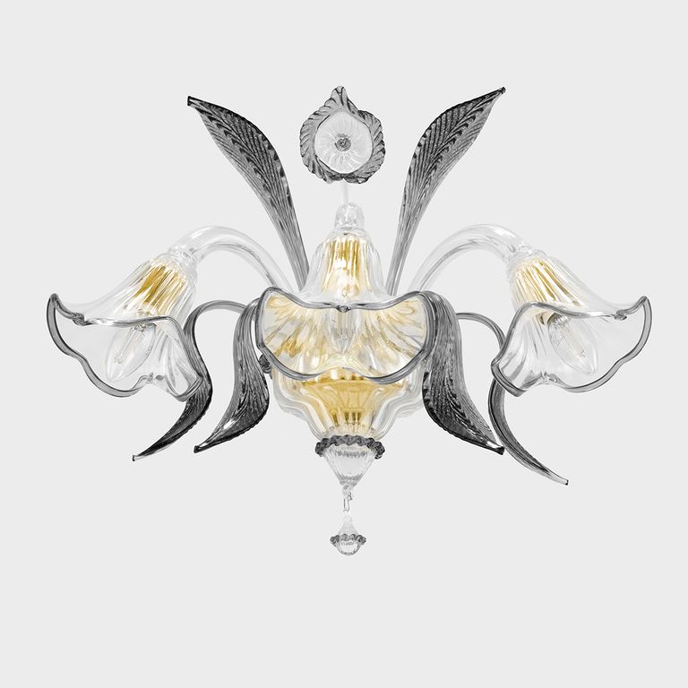 • Work of art embellished with precious leaves and flowers produced by Venetian master glassmakers.