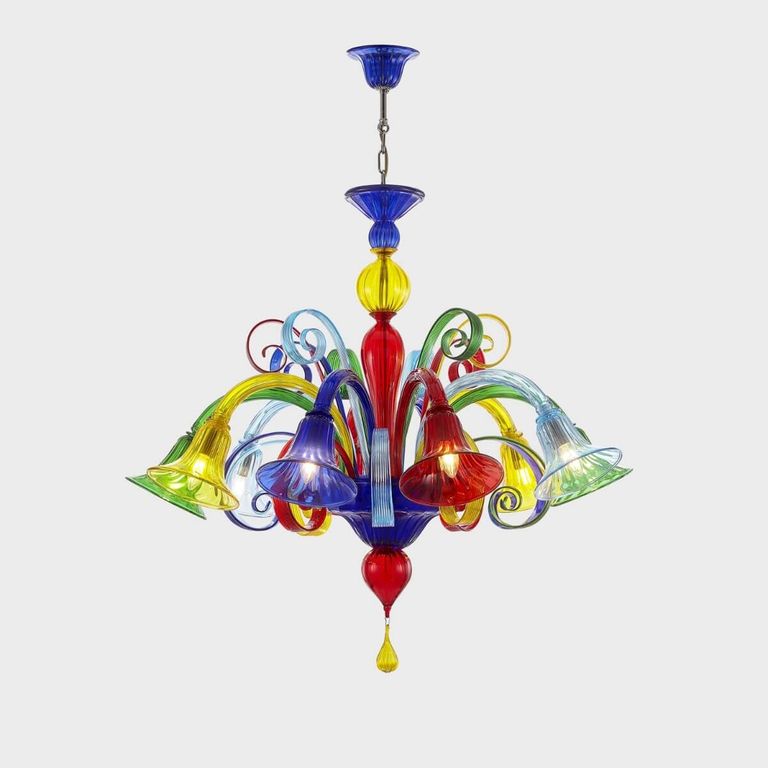 • Multicoloured work of art embellished with curls produced by Venetian master glassmakers.