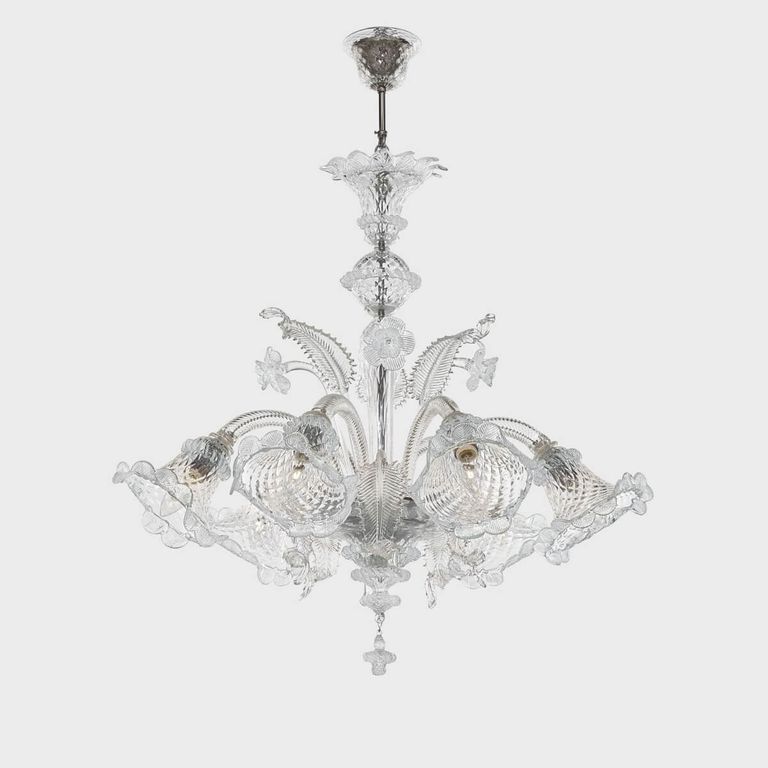 • Work of art embellished with precious leaves and flowers produced by Venetian master glassmakers.