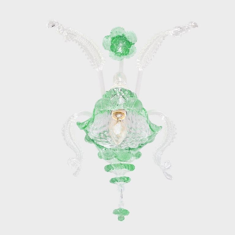 Atena: authentic Venetian classic chandelier, crafted in Murano glass. Embellished with pretty flower and leaf elements, this chandelier is forged and hand-decorated by Murano master glassmakers.