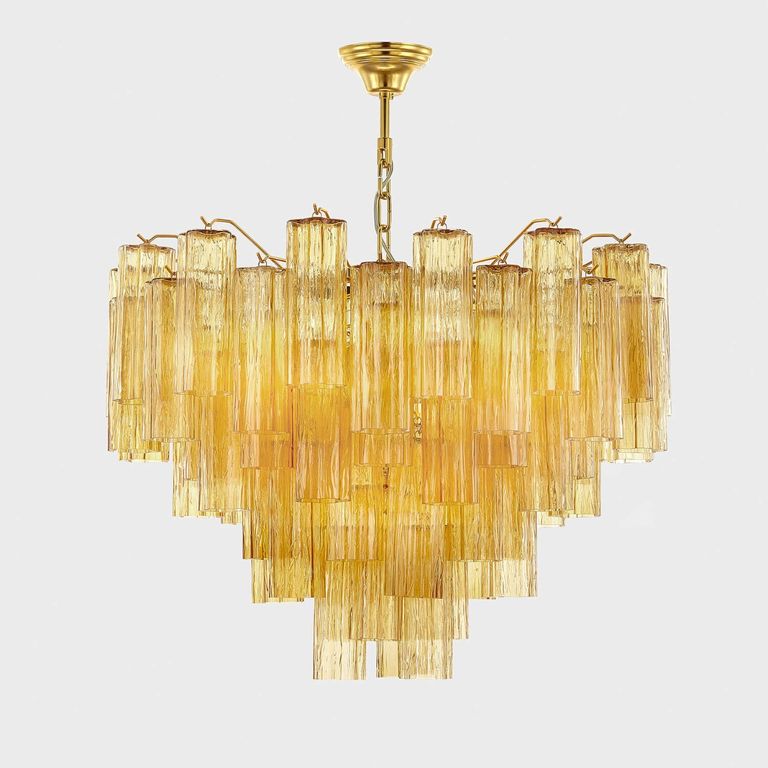 • The original design plays on the repetition of sparkling glass elements, called 'tronchi', to create refined and enchanting lighting.