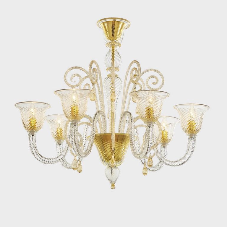 • Gold Eos: authentic classic pastoral chandelier in Sogni di Cristallo® Venetian blown glass.