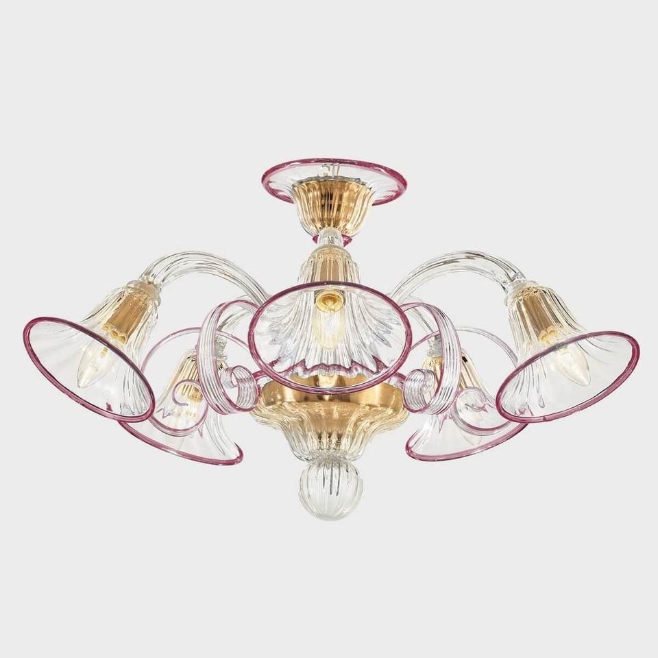 Ermes: Authentic Venetian classic ceiling lamp, crafted in Murano glass. Embellished with pretty elements, this ceiling lamp is forged and hand-decorated by Murano master glassmakers.