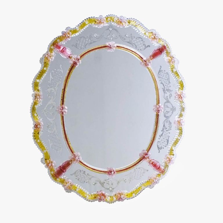 • Work of art embellished with flowers, leaves and frames made by hand by Venetian glass masters.