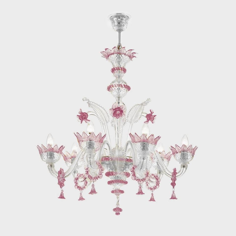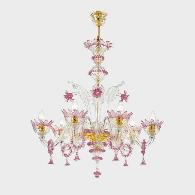 • Work of art embellished with precious rings, leaves and flowers produced by Venetian master glassmakers.