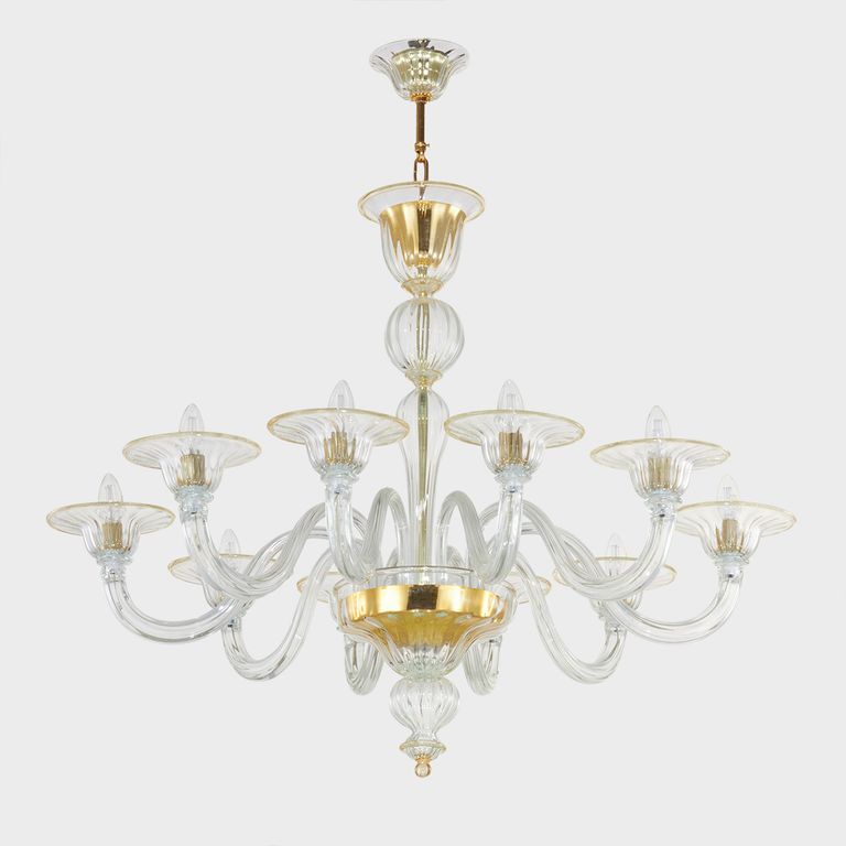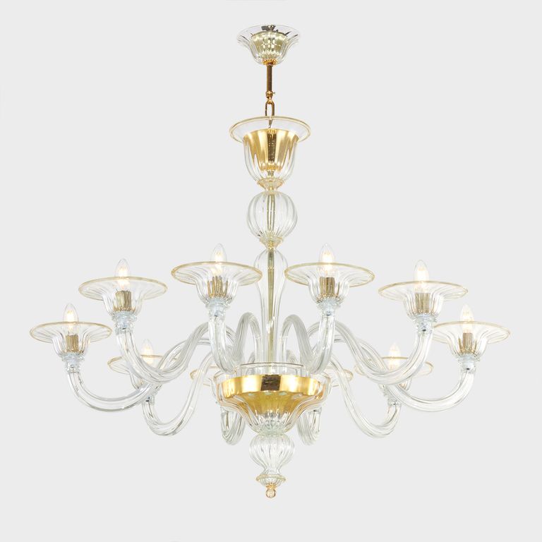 • Gold Proteo: authentic classic chandelier in Sogni di Cristallo® Venetian blown glass.