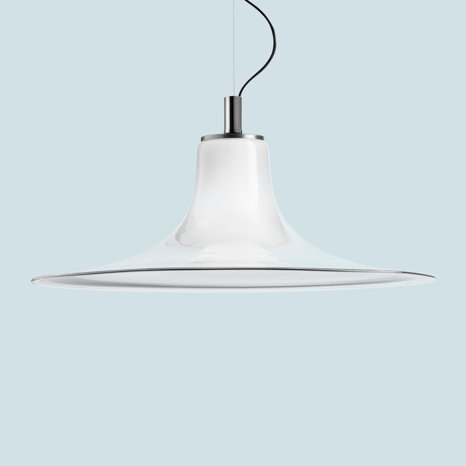 Diffused-light blown-glass pendant lamp Inspired by 1980s Italian design.