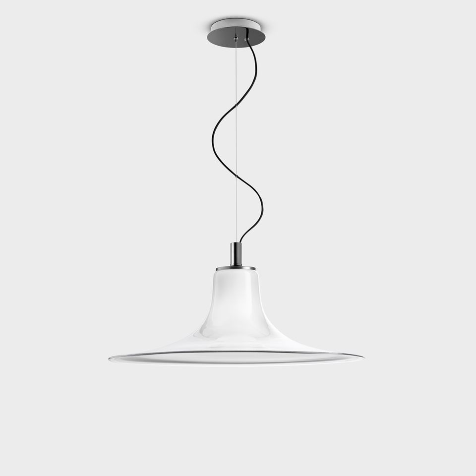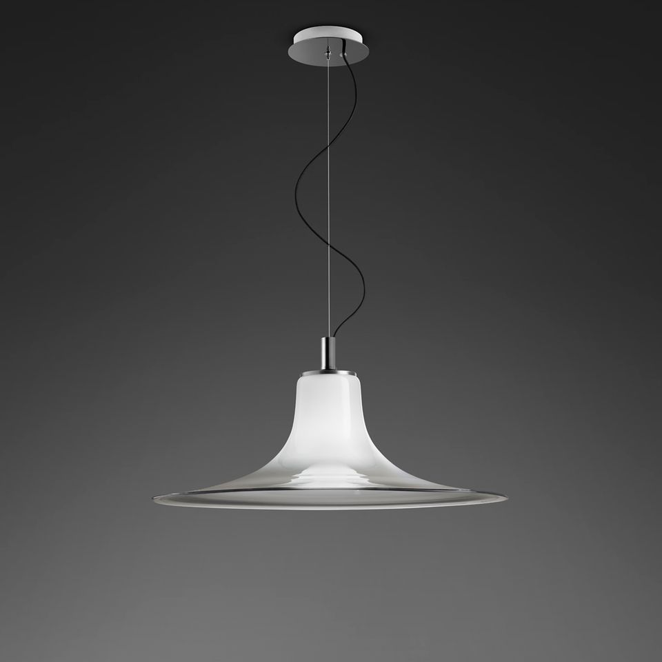 The glass diffuser, made by traditional mouth-blowing, is available in the colours transparent crystal and smoky grey with the special "incamiciato sfumato" finish which creates incredible colour effects. This authentic workmanship is achieved through an extraordinary manual process which brings together the glass of several overlapping layers in different colours, forming an intriguing colour gradient from an intense colour to a transparent one.