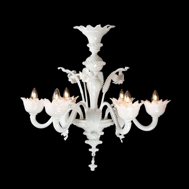 Work of art embellished with precious leaves and flowers produced by Venetian master glassmakers.