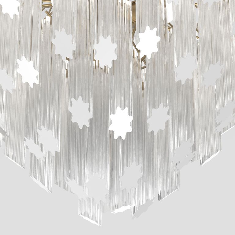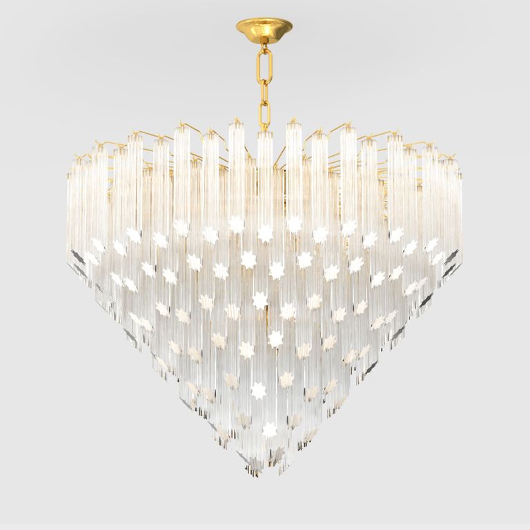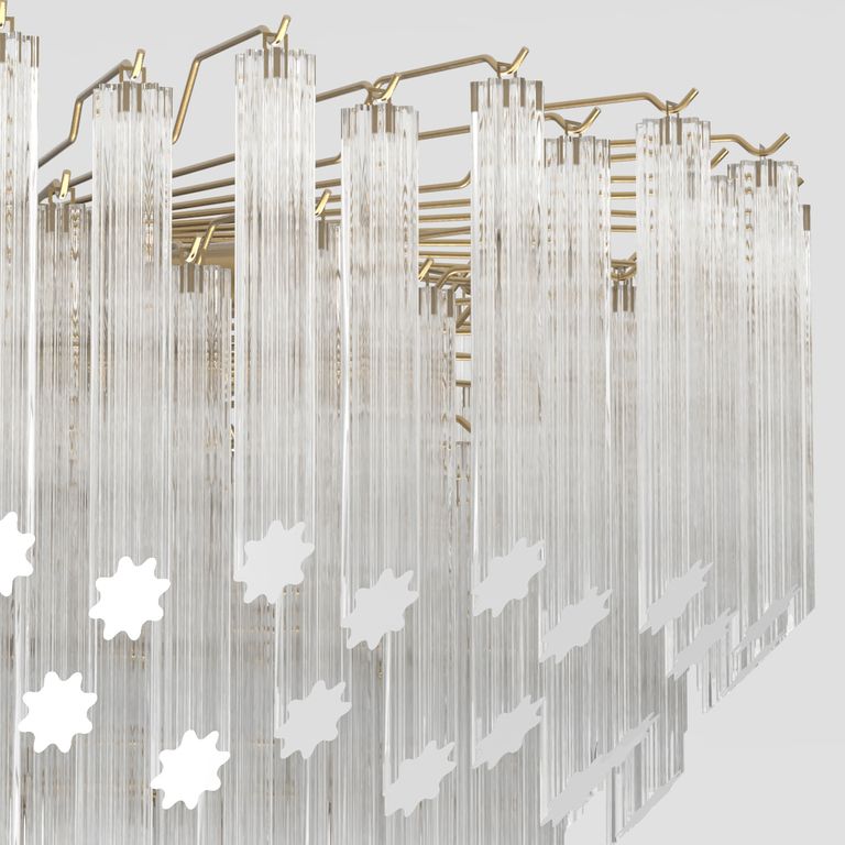 • The original design plays on the repetition of sparkling glass elements, called 'tronchi', to create refined and enchanting lighting.