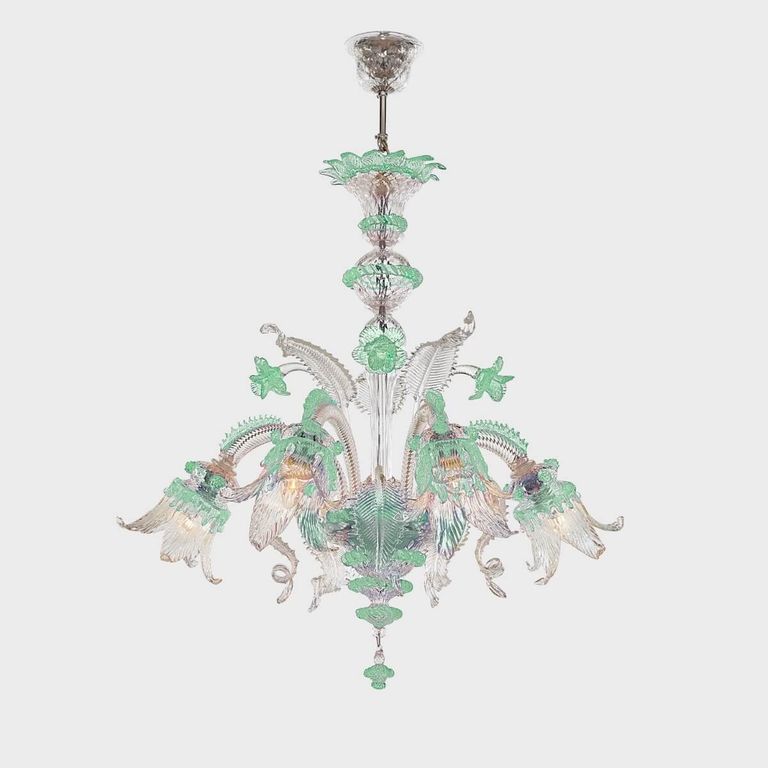 • Work of art embellished with leaves and flowers made by Venetian master glassmakers.