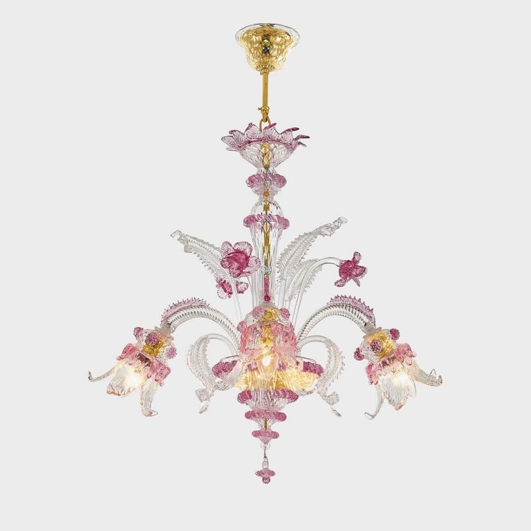• Work of art embellished with leaves and flowers made by Venetian master glassmakers.