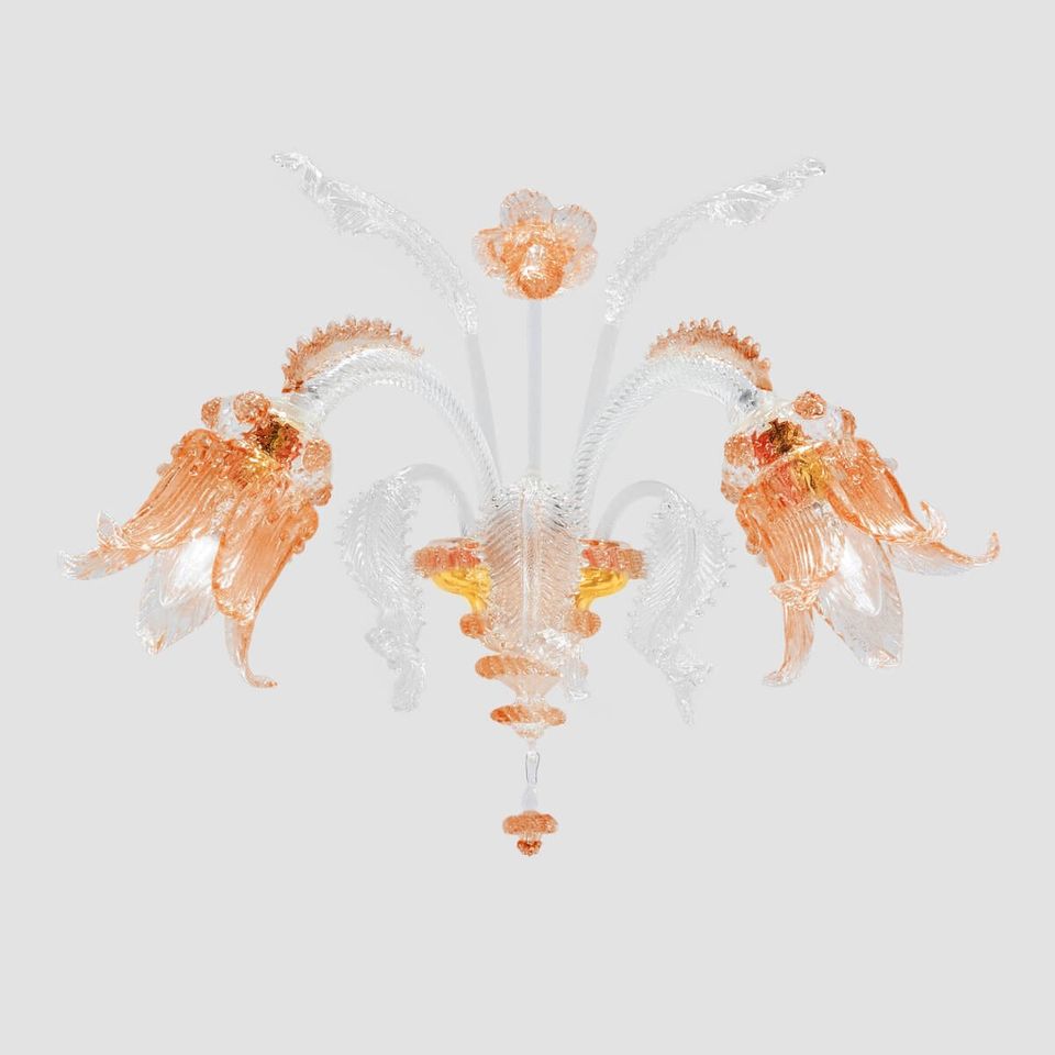 • Work of art embellished with precious leaves and flowers produced by Venetian master glassmakers.