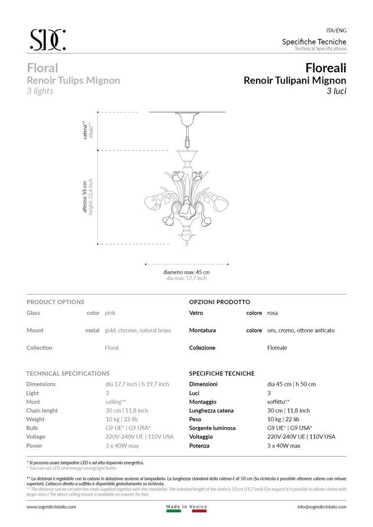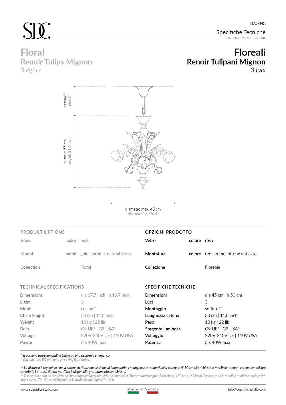 Renoir Tulipanes Mignon: auténtica lámpara de araña floral de vidrio soplado veneciano Sogni di Cristallo®.