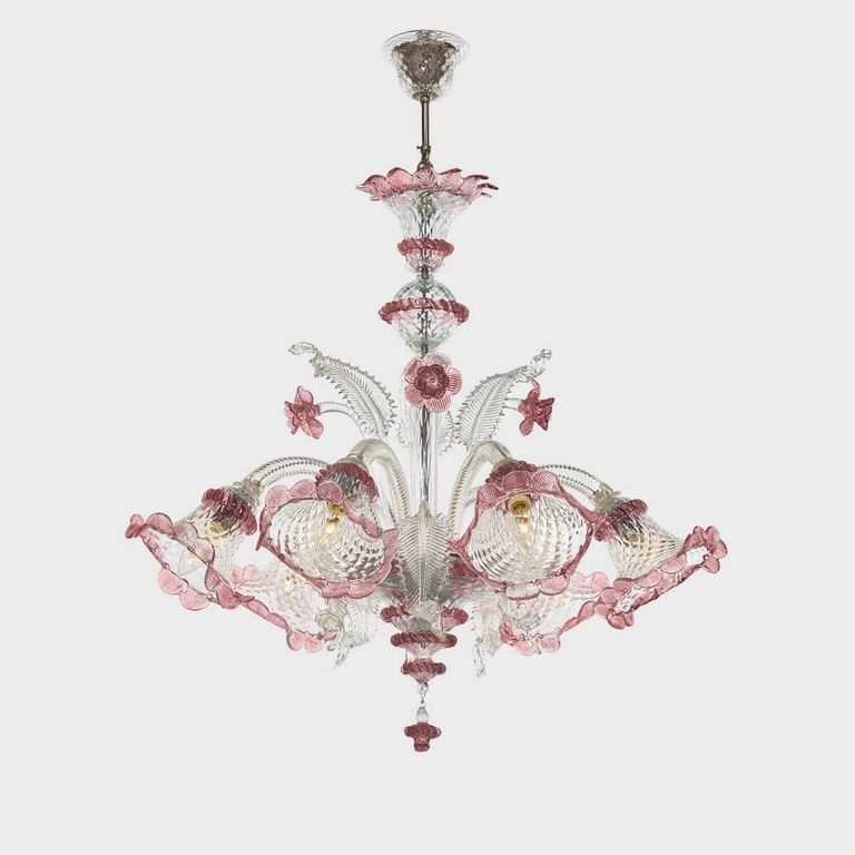 Work of art embellished with precious leaves and flowers produced by Venetian master glassmakers.